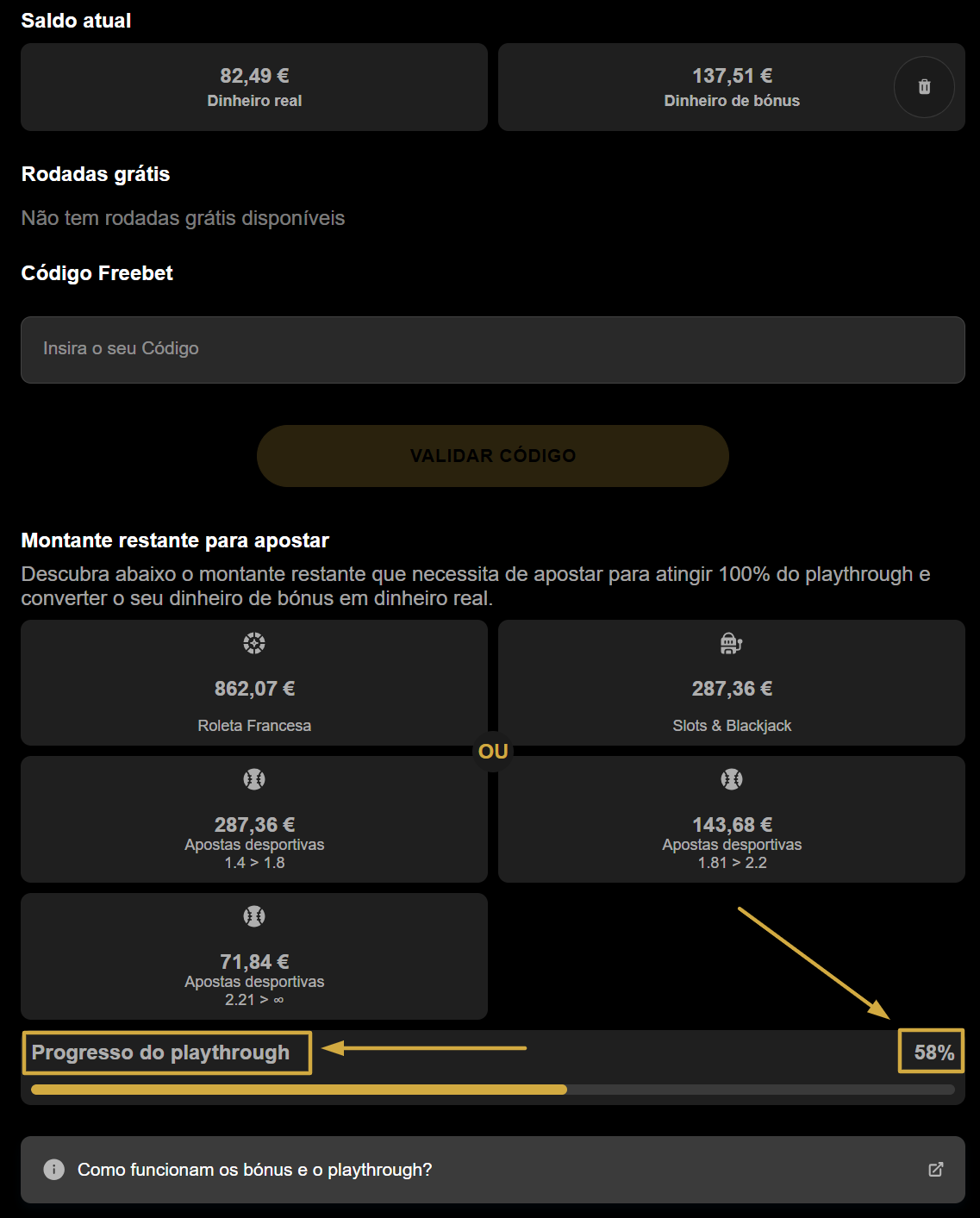 Para acompanhar a evolução do playthrough dos seus bónus, basta seguir estes passos: