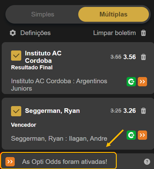 Sempre que adicionares um jogo que cumpra os requisitos, verás a odd desse evento "subir" instantaneamente no teu boletim de apostas.